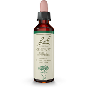 La Centaurée améliore l’affirmation de soi, aide à suivre son propre chemin. La petite centaurée, plante commune des bords de chemin, appartient à la famille botanique de la gentiane, dont elle a la saveur amère. D'une apparence discrète, elle est parfois difficile à repérer, surtout avant l'épanouissement de ses fleurs disposées en ombrelles, d'un joli rose doux. elles se ferment dès que le temps se met au gris. C'est le vent qui disperse ses minuscules graines. Cet effacement est à mettre en parallèle avec les états émotionnels associées à l’élixir centaurée, destiné, selon Bach, à ceux qui "sont si désireux d'aider qu'ils deviennent des serviteurs plus que des aides bénévoles. Leur bonne nature les entraîne à faire plus que leur part de travail et, ce faisant, ils peuvent négliger leur propre mission particulière dans la vie". Dévouement et oubli de soi, volonté trop faible, passivité sont aussi des traits de caractère de la personnalité "centaurée", l'un des douze profils types définis par Bach. Le remède fait prendre conscience de ses propres désirs, ce qui permet de les affirmer et de dire non quand cela s'avère nécessaire.