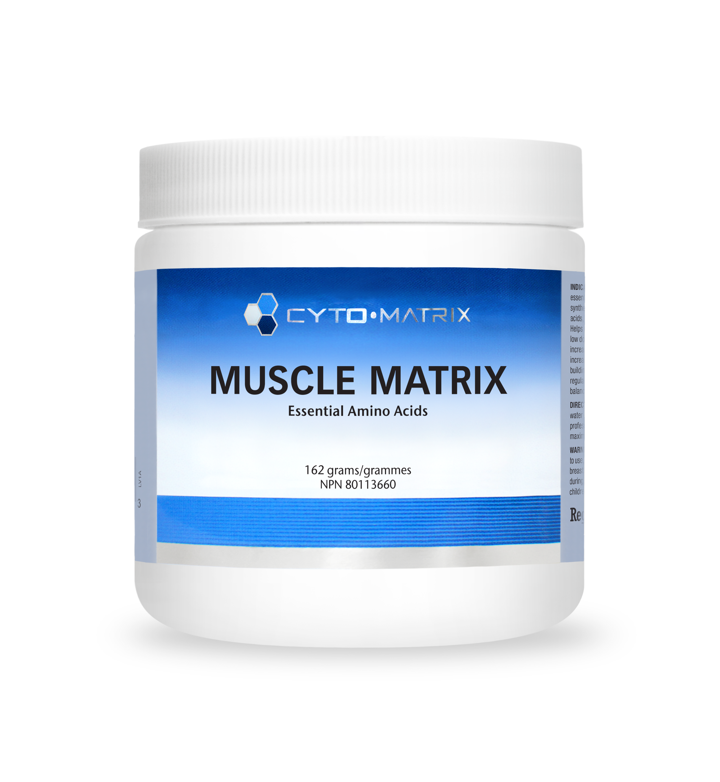 Muscle Matrix de Cyto-Matrix fournit un soutien nutritionnel pour aider à préserver et à maximiser la masse musculaire maigre en cas d'activité modérée et vigoureuse, de perte involontaire de masse musculaire squelettique et de force et de circonstances sédentaires.